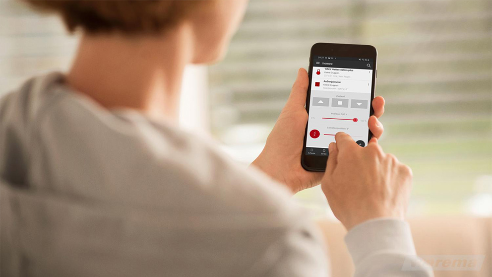 Mit der Erweiterung WMS WebControl pro bedienen Sie Markise, Rollladen & Co. bequem per App und profitieren von voreingestellten Automatikfunktionen.