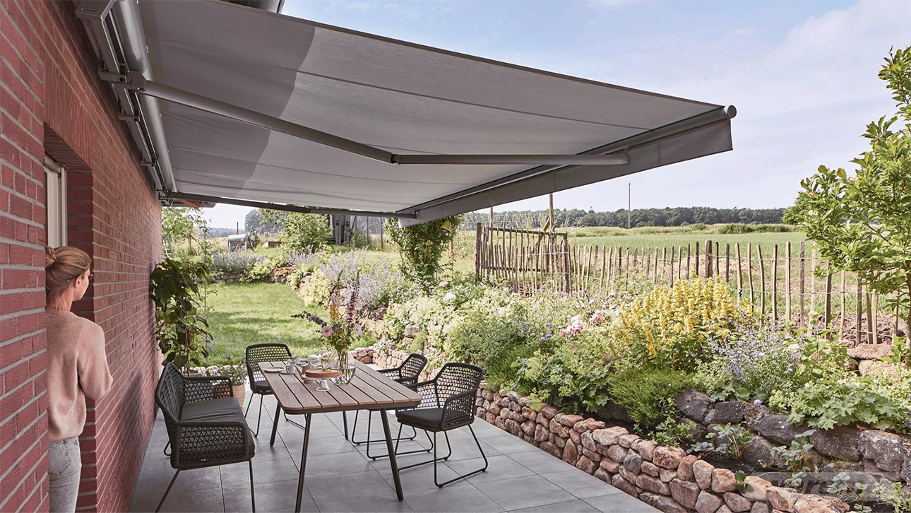 - Schutz von oben für Tuch und Gelenkarme durch das serienmäßige Regendach