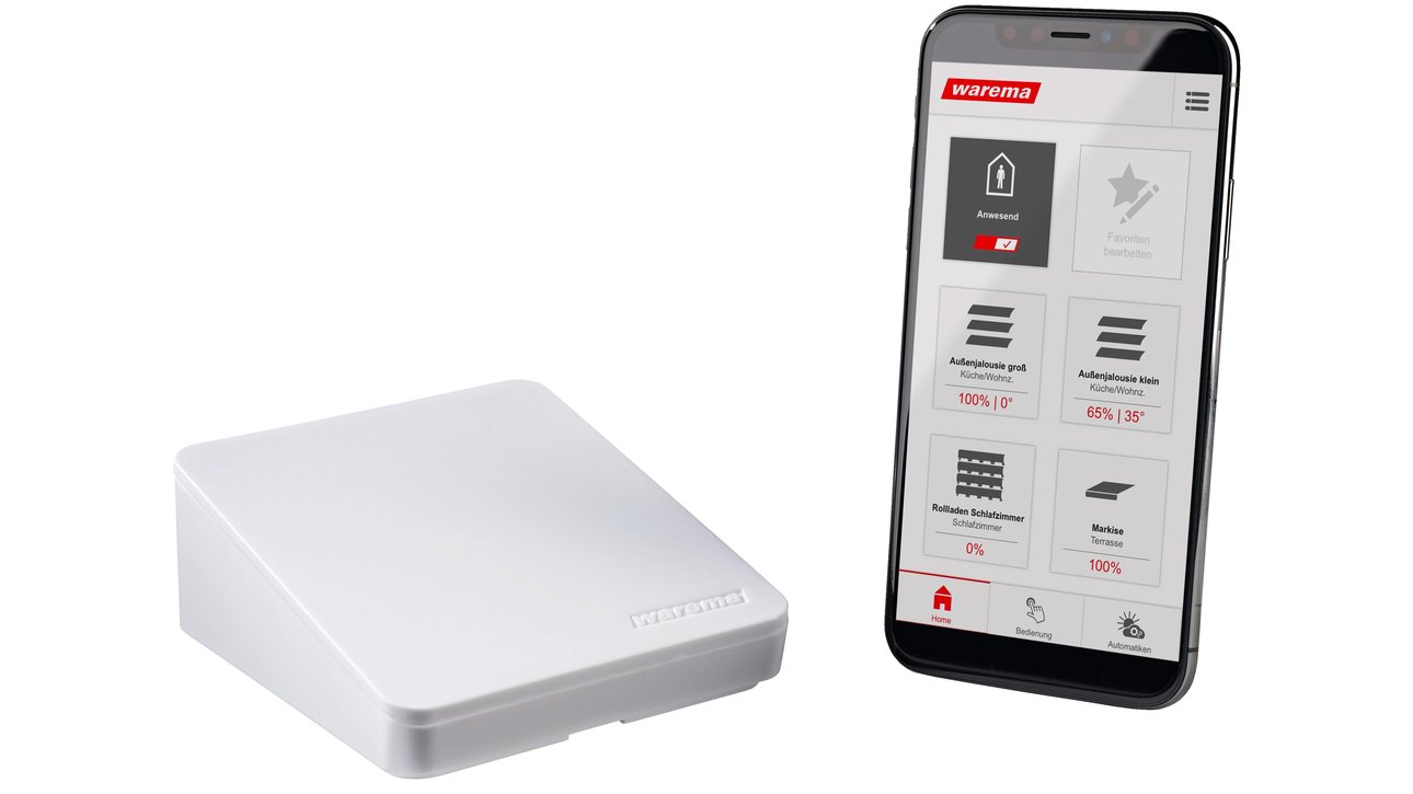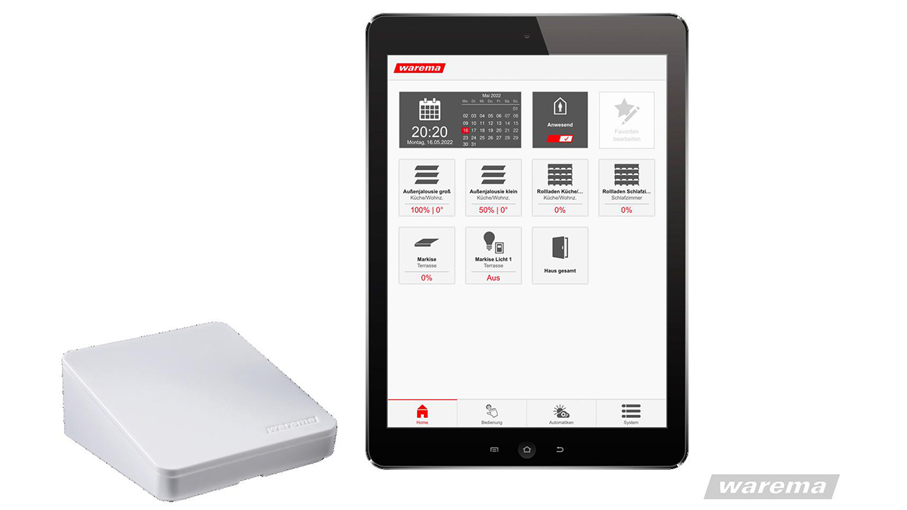 Smart Home Lösungen von WAREMA machen Ihr Zuhause fit für die Zukunft. Steuern Sie mit Smart Home ganz einfach Rollläden, Markisen oder Jalousien über einen Handsender oder ganz komfortabel per Smartphone. So haben Sie mit einem Knopfdruck Lichtstimmung und Klima bestens im Griff. Die cleveren Smart Home Geräte von WAREMA sorgen dank intelligenten Messwertgebern automatisch dafür, dass im Winter weniger Wärme abgestrahlt wird oder dass sich im Sommer Ihre Räume nicht zu stark aufheizen. Das WAREMA Smart Home kreiert Ihr persönliches Wohlfühlklima mit größtmöglicher Energieeffizienz.